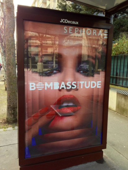 Comme nous le montre Clara de Sorbay sur ce même blog, c’est ainsi Sephora qui, en jouant avec ses propres innovations linguistiques, se permet de rappeler combien l’attraction publicitaire relève d’une rhétorique érotisée et d’une érotisation de la rhétorique. En s’affichant, la provocation se dresse à la faveur de mots spectaculaires qui prennent corps :