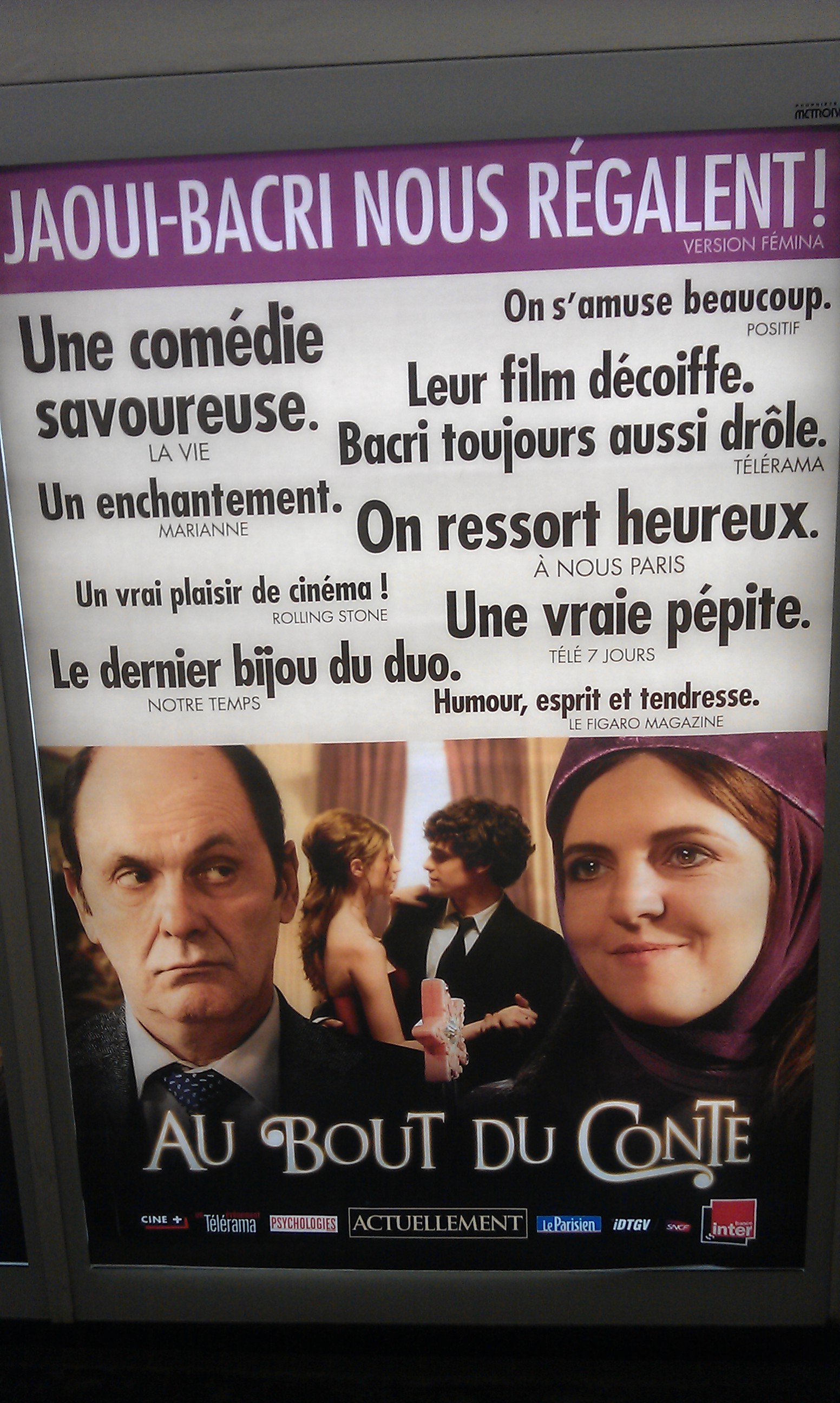 Cela n’est pas sans effet alors sur la communication autour de la sortie des films et de leur affichage urbain, ainsi que nous le montre le cas de la sortie du dernier Bacri/Jaoui du début de ce mois de mars :