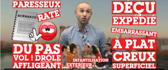 A l’écran, le mot frappe l’image comme un tampon qui valorise ou stigmatise le film, tout en lui donnant un prix quasi monétaire. Plus que jamais la parole critique est d’argent et construit sous nos yeux la valeur de l’objet culturel qu’elle examine. Comme à la Nouvelle Star, le bleu, c’est bien, et le rouge, c’est pas bien :