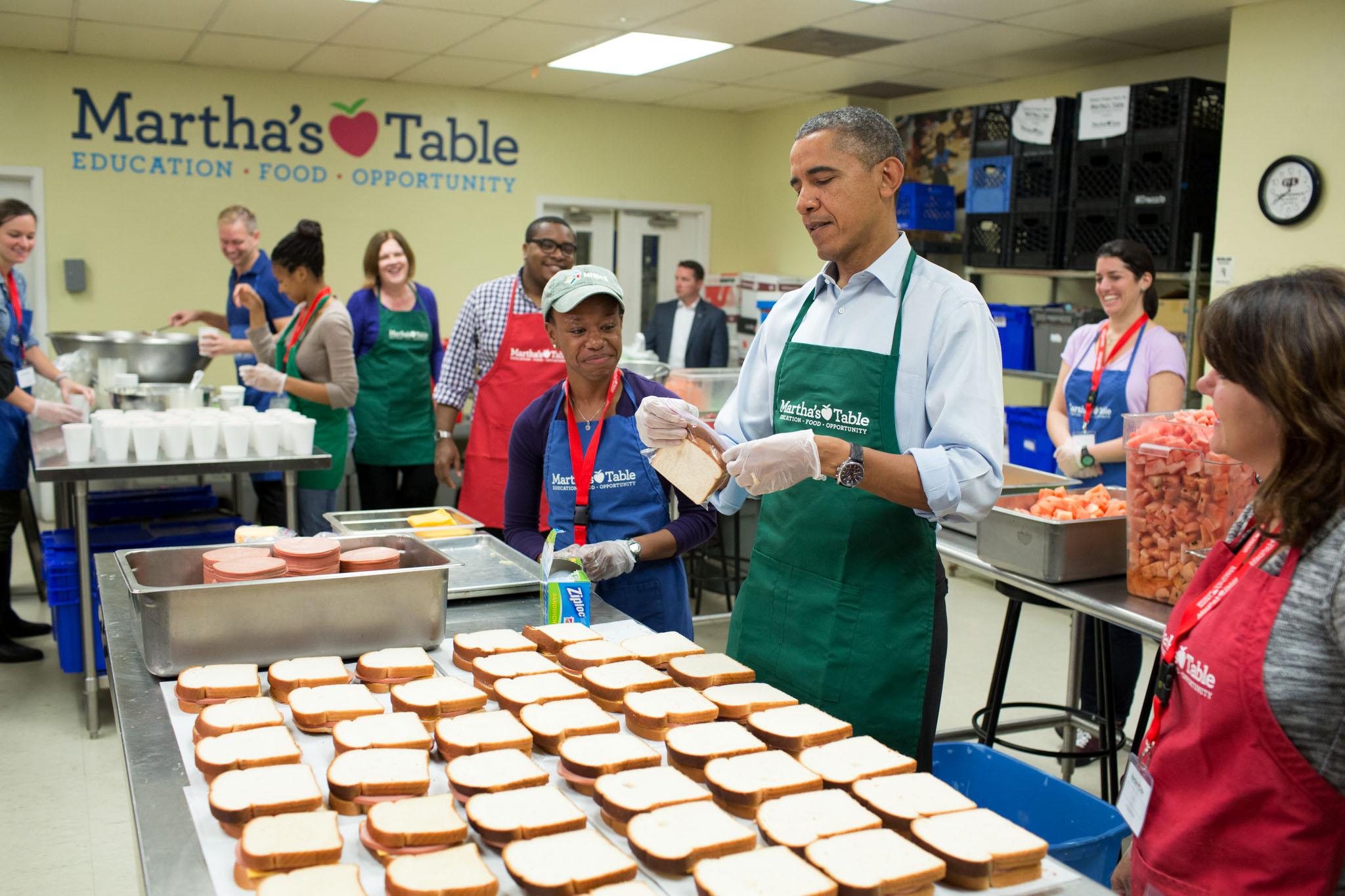 De plus, le président a illustré sa proximité, son assistance et sa compassion envers le peuple en faisant par exemple une brève apparition dans les locaux de l’association Martha’s table. Cette association caritative qui vient en aide aux sans abris et aux travailleurs aux faibles revenus a accepté son aide. En les aidant à faire des sandwichs, Obama a montré qu’il était capable, à la différence des républicains ancrés dans leurs positions, de mettre « la main à la patte » et de partager la souffrance du peuple. Ce coup de communication médiatique a été un réel succès pour Obama qui est sorti de la crise plus fort que jamais. Intangible, défenseur d’une loi sociale historique, il apparaît alors comme un président fort nécessaire au bien de l’intérêt national.